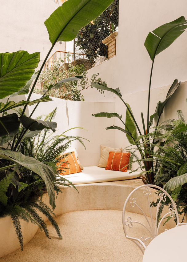 An abandoned commercial space in a lively Lisbon neighborhood, Campo de Ourique, was transformed into a compact flat with a small backyard. A red metal grid was added to the existing storefront, creating a protective yet porous threshold that mediates between the street and the interior. Just behind it, a wall of glass blocks allows natural light to get in while preserving privacy — softening the transition from public to domestic space. It’s not uncommon to find the client sitting just inside the open door, reading a book or enjoying a coffee — a quiet moment held between the rhythms of the home and the city.
